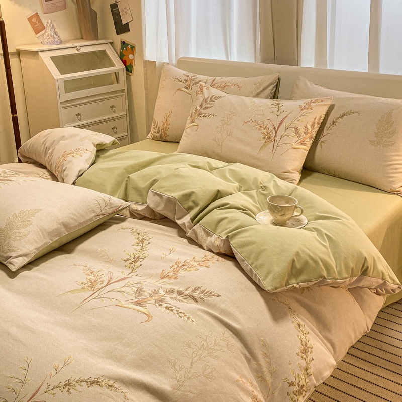 Pure Cotton Brushed Four-piece Set Cotton Dormitory Three-piece Simple Style Quilt Cover