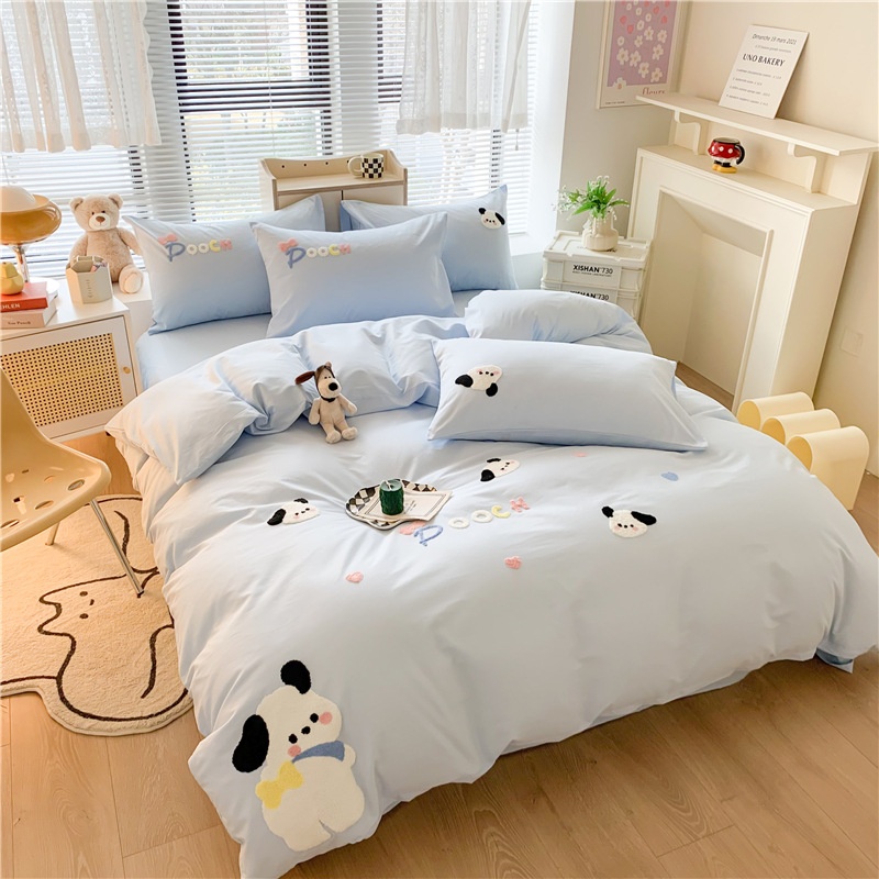 Pure Cotton Small Fresh Bed Four-piece Set Pure Cotton Children's Quilt Cover Cartoon Dormitory Bed Sheet Three-piece Bedding Set