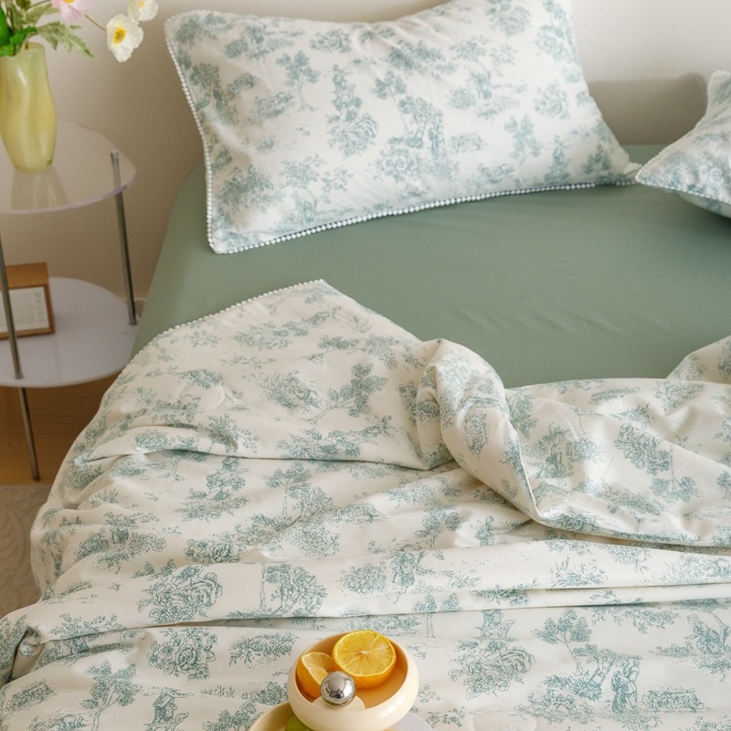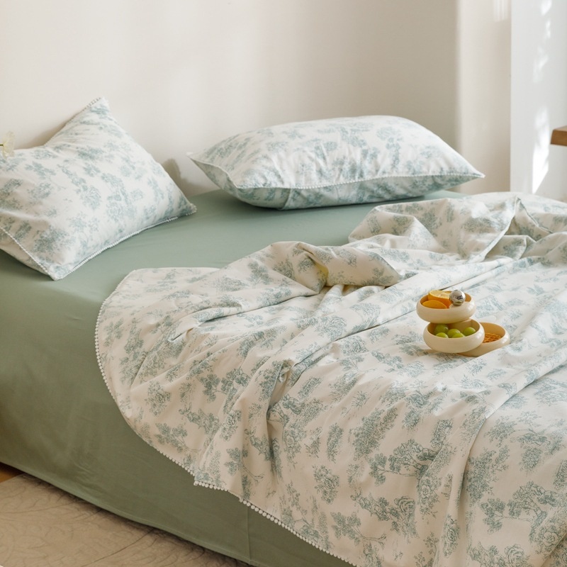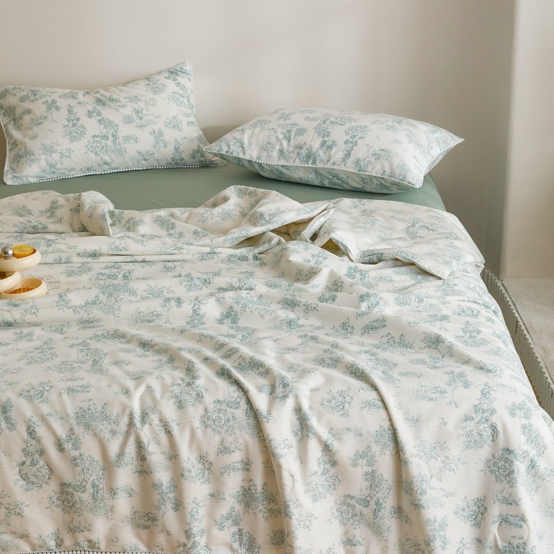Small Floral Summer Quilt Four-piece Set Pure Cotton Summer Quilt Soy Fiber Soft And Machine Washable