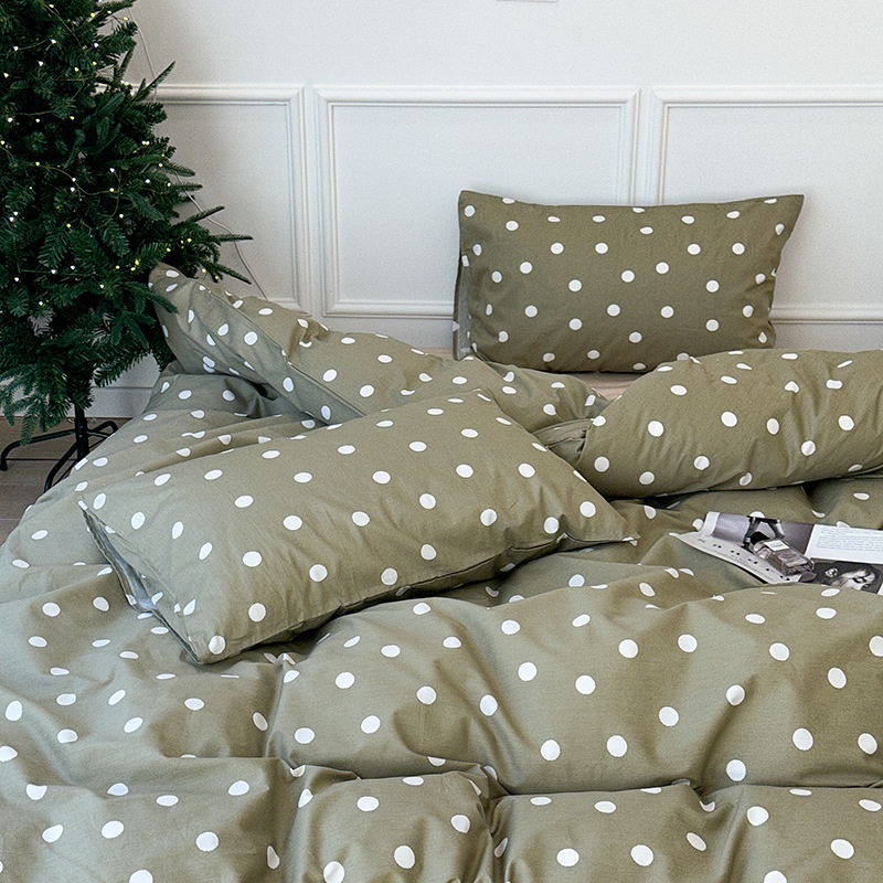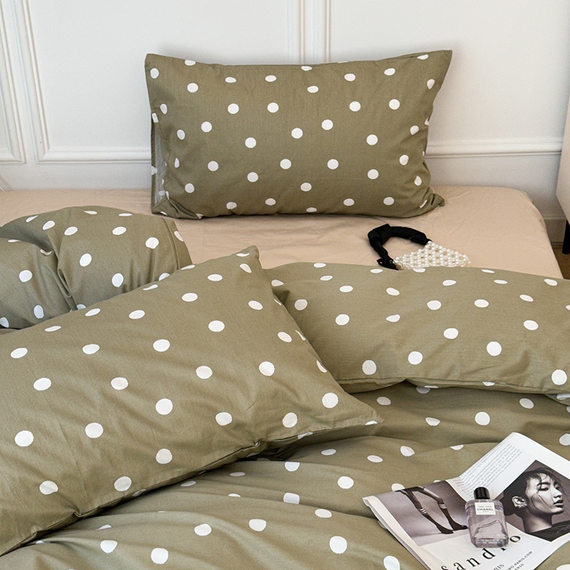 Cotton Retro Green Polka Dot Four-piece Korean Girly Pure Cotton Quilt Cover