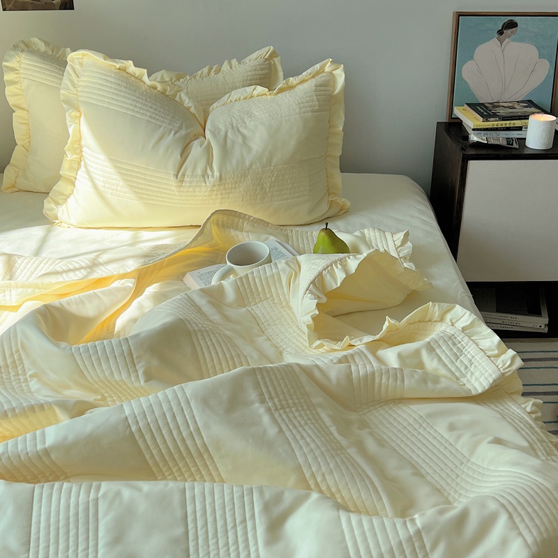 Girly Cream Series Washed Yarn Summer Quilt Four-piece Set Air-conditioning Quilt Three-piece Set Dormitory Summer Cool Quilt Machine Washable
