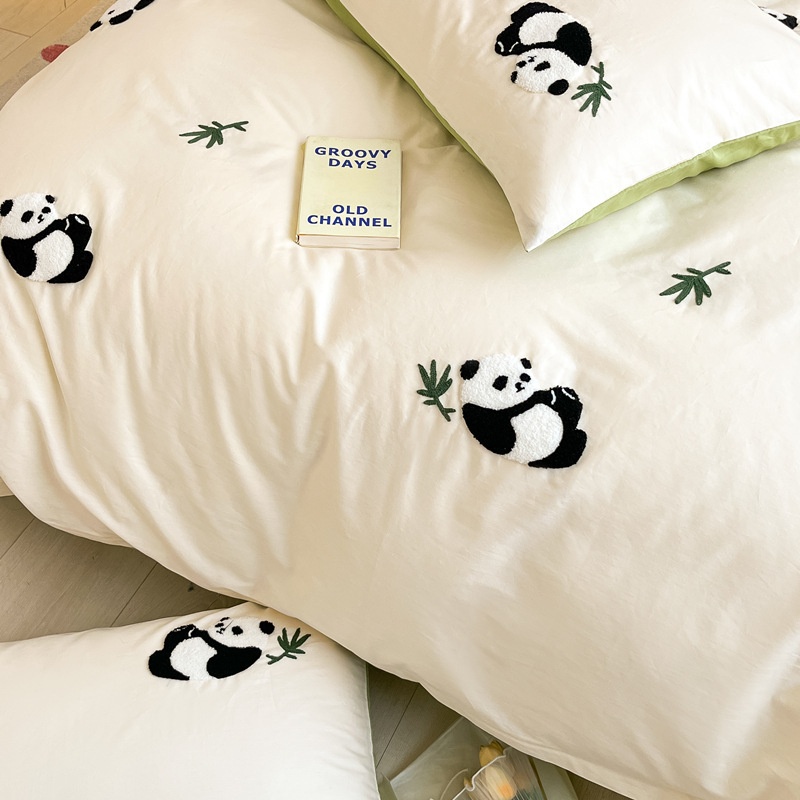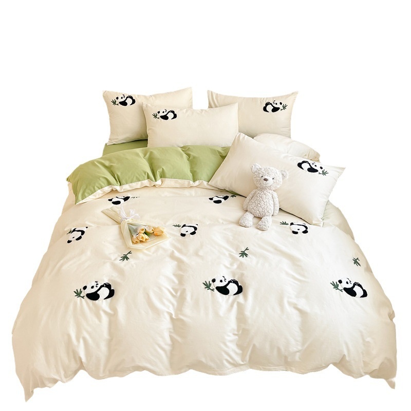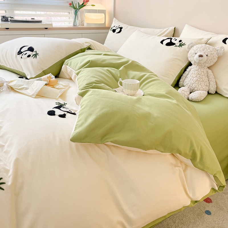 Cartoon Cute And Adorable Panda Bed Four-piece Set100 Cotton Towels Embroidered Quilt Cover Sheets