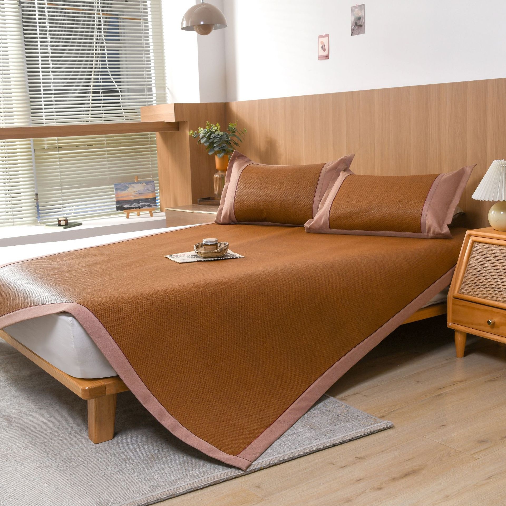 Light Luxury Brand-style High-end Ice Silk Mat Foldable Machine Washable Air-conditioned Mat Thickened Breathable Three-piece Set