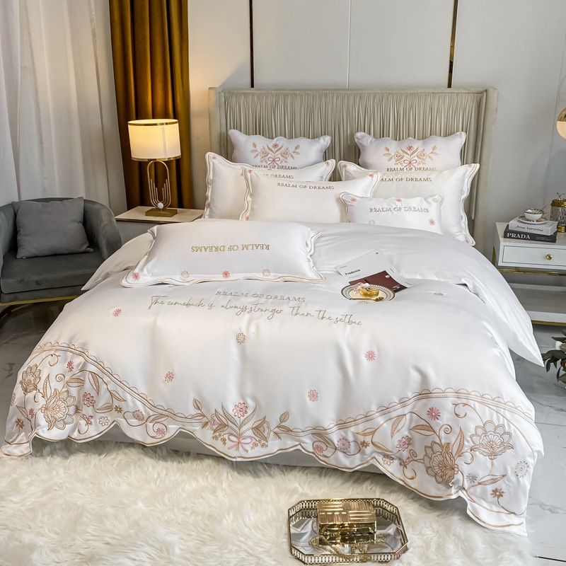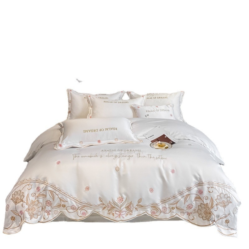 Cotton Four-piece Long-staple Cotton Bedding Set60-count Embroidered Bed Sheet And Quilt Cover