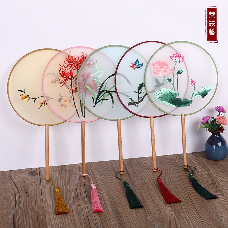 Double-sided Embroidered Round Fan For Women,Ancient Style Fan,Hanfu Round Small Fan,Ancient Style Round Fan,Advertising Fan