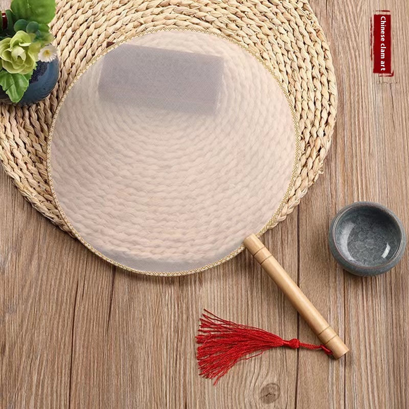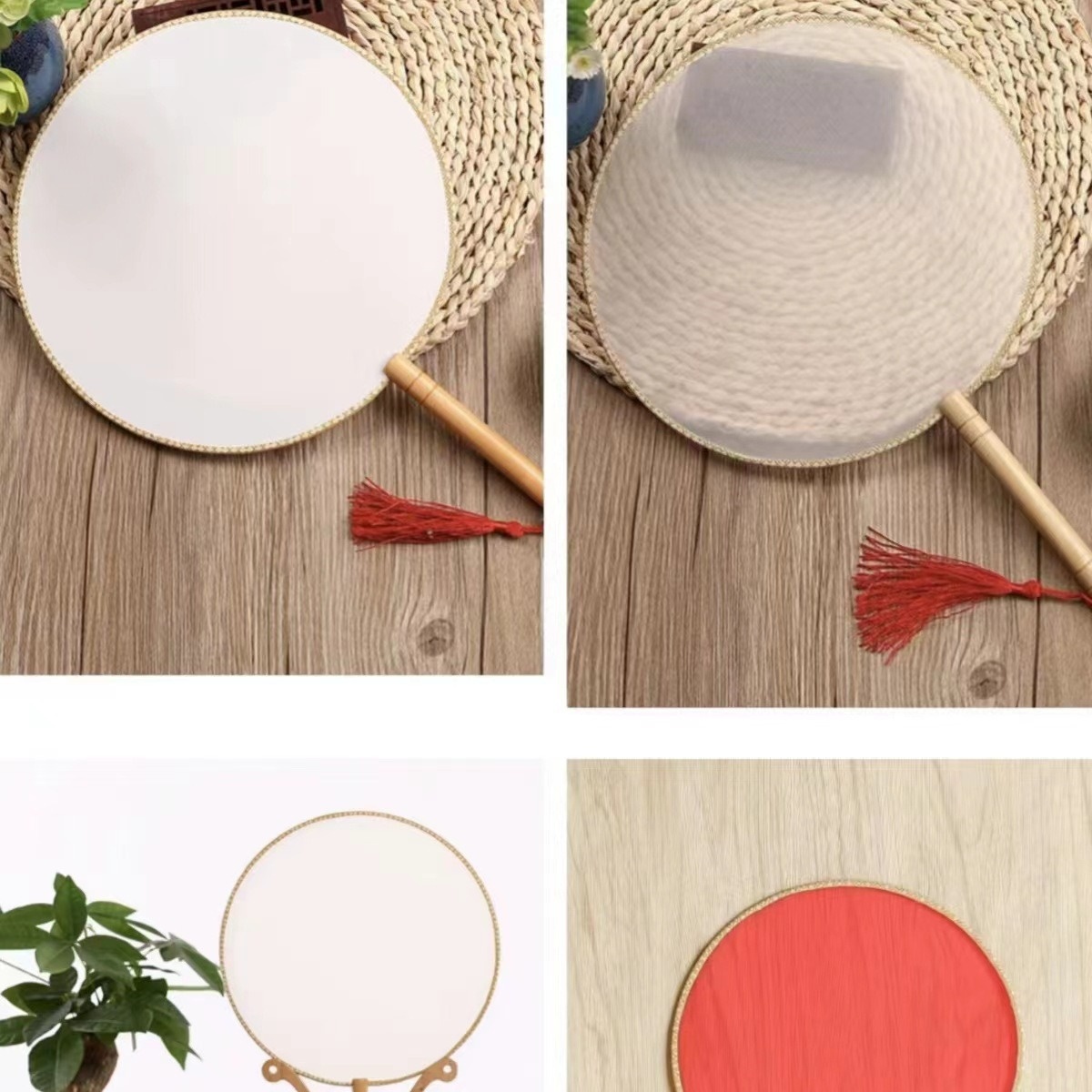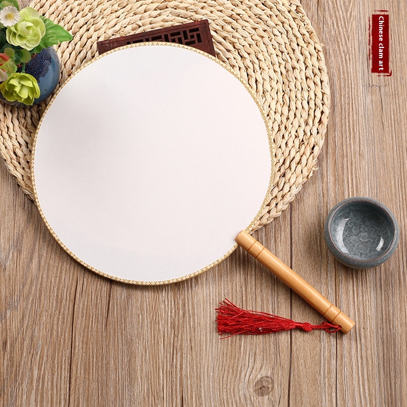 Blank Round Fan DIYProduction Of Fine Brush Painting Calligraphy Palace Fan Imitation Silk Embroidery Ancient Style Hanfu Women's Fan
