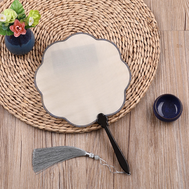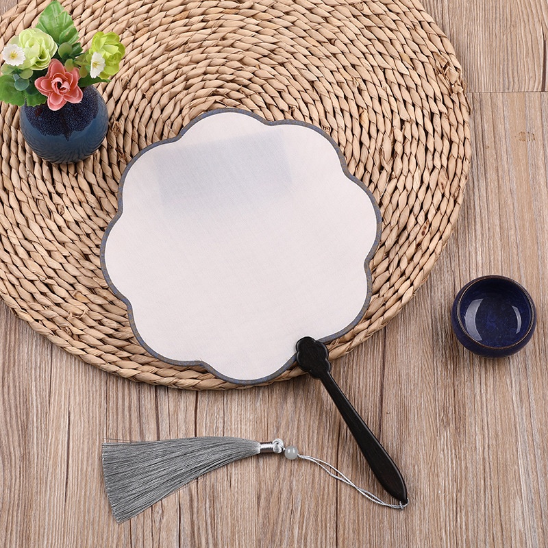 Ebony Ruyi Handle Pure Silk Flower-shaped Blank Ancient Style Round Fan Hand-painted Fan DIYHandmade Fan