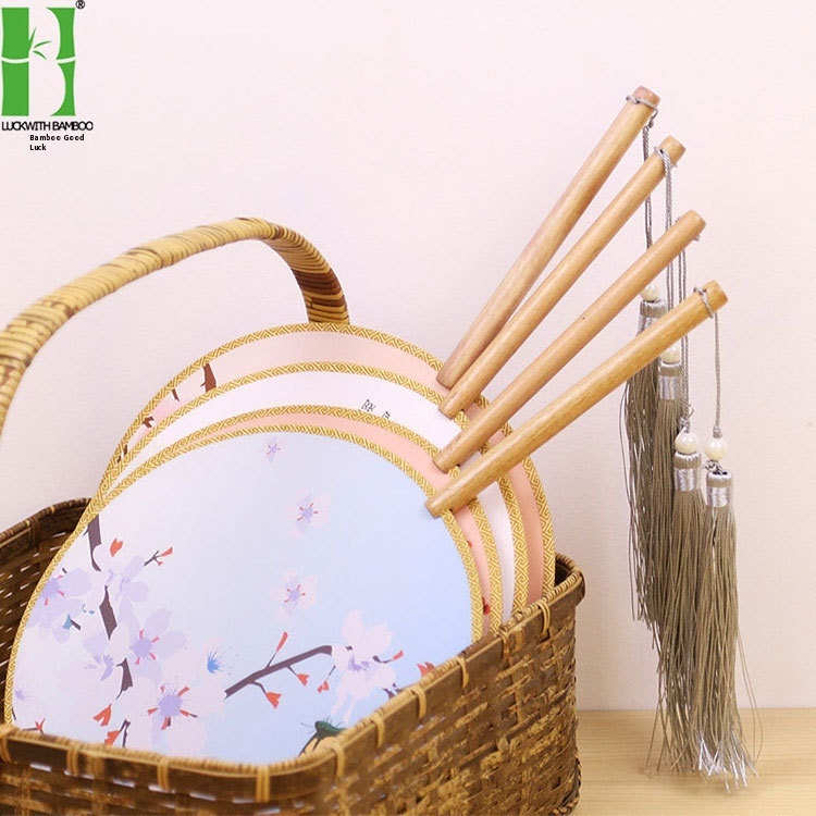 Hanfu Ancient Style Round Fan Printable Medium And Long Handle Palace Fan Chinese Style Classical Court Dance Fan