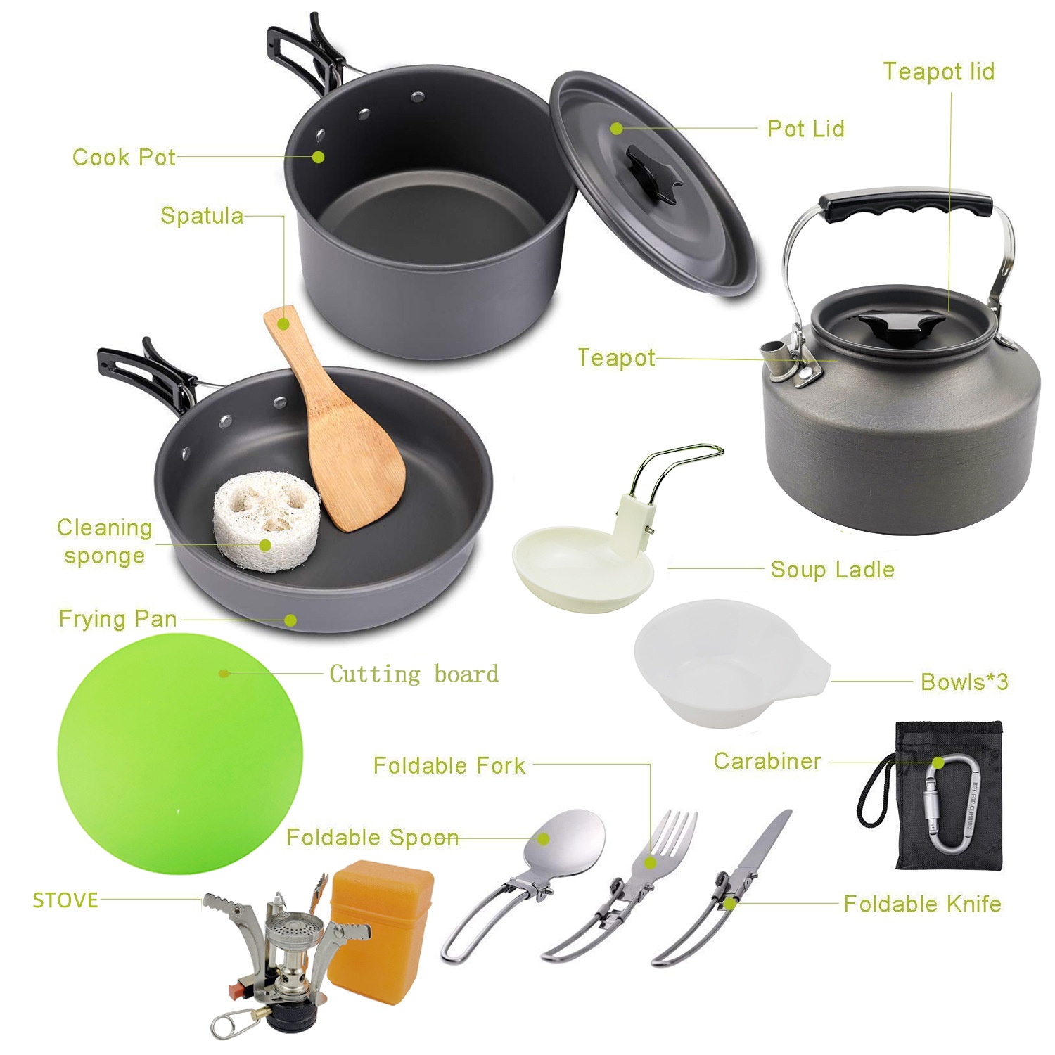Outdoor Products Hiking Camping Teapot Pot Stove Set2-3 People Picnic Stove Tableware