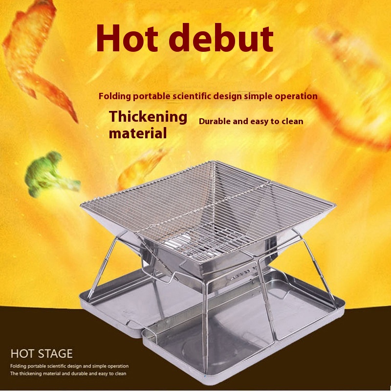 Barbecue Grill Outdoor Portable Stainless Steel Folding Barbecue Grill Wood Burning Stove Burning Stove BBQCharcoal Grill