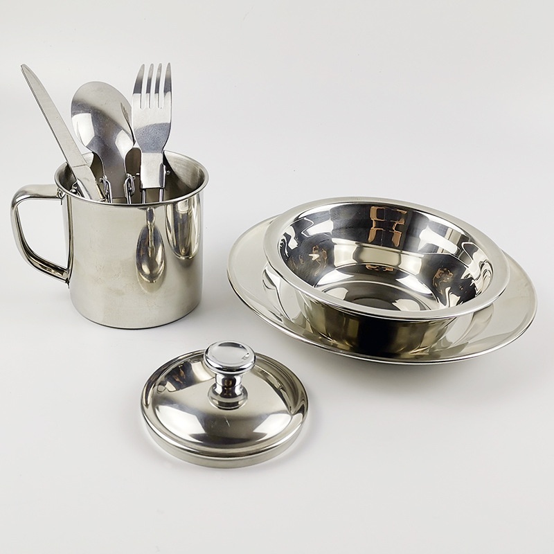 Single Stainless Steel Tableware Outdoor Camping Water Cup Cooker Set Portable Picnic Kitchenware