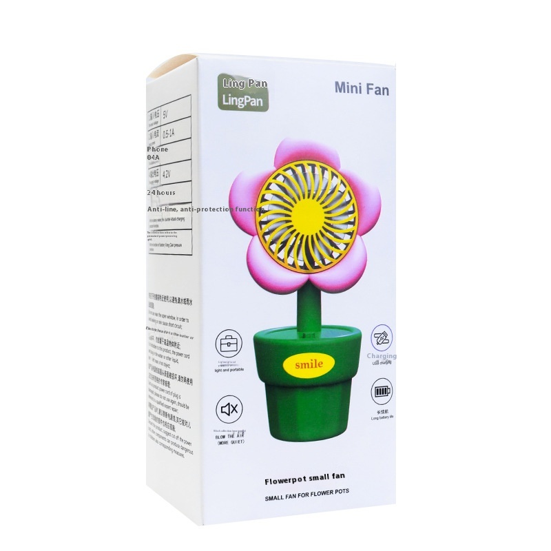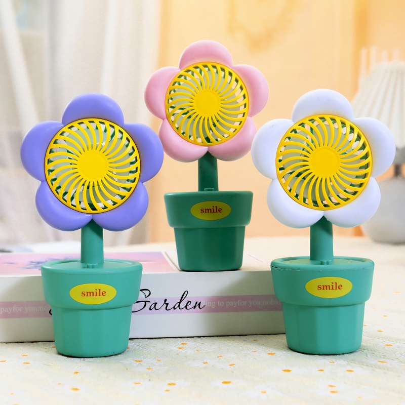 Summer Cute Small Flower Pot Fan Children's Desktop Handheld Mini Silent Flower Fan Girl Birthday Gift