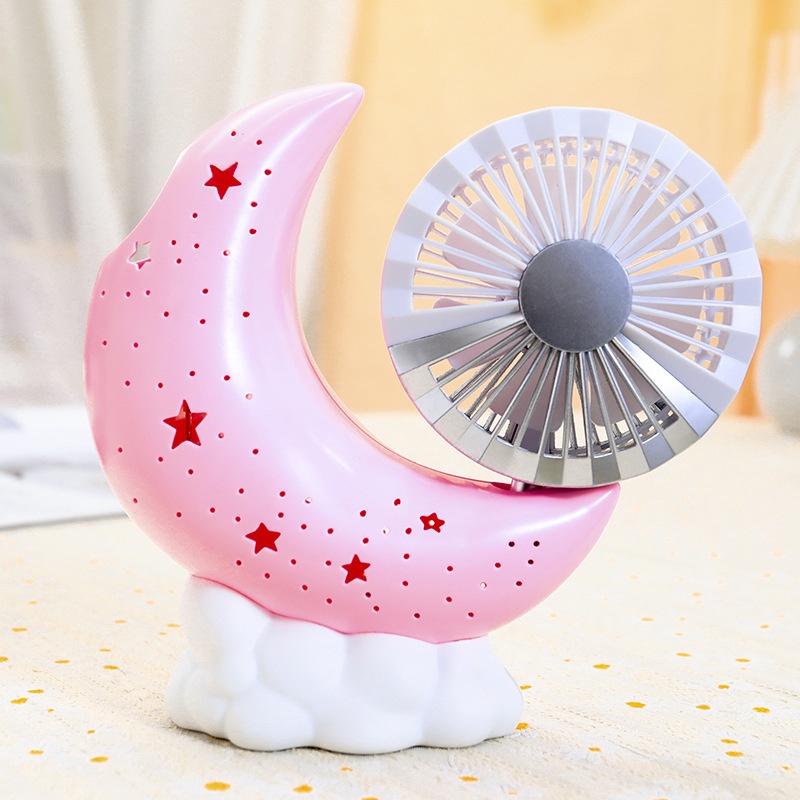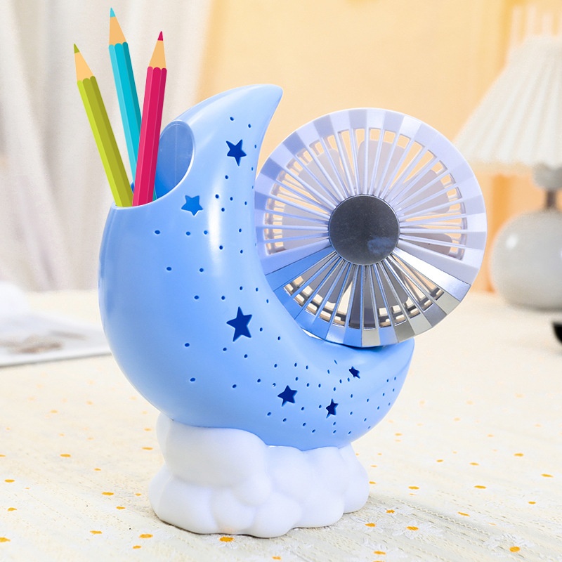 Adjustable Angle Pen Holder Storage Moon Base Fan Starry Sky Atmosphere Light Three-speed Adjustable Handheld Fan