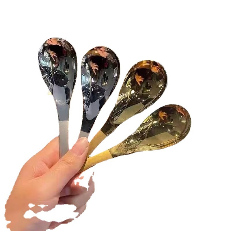 High-value Stainless Steel Spoon Thickened Internet Celebrity Spoon Adult Eating And Drinking Soup Household Spoon Long Handle Round Spoon