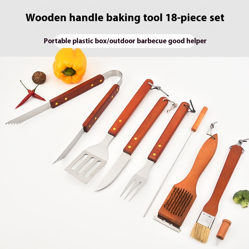 Stainless Steel Wooden Barbecue Tools Outdoor Barbecue Tools Portable Plastic Box Set