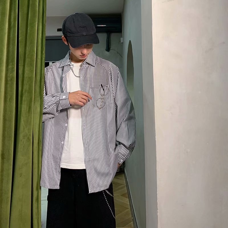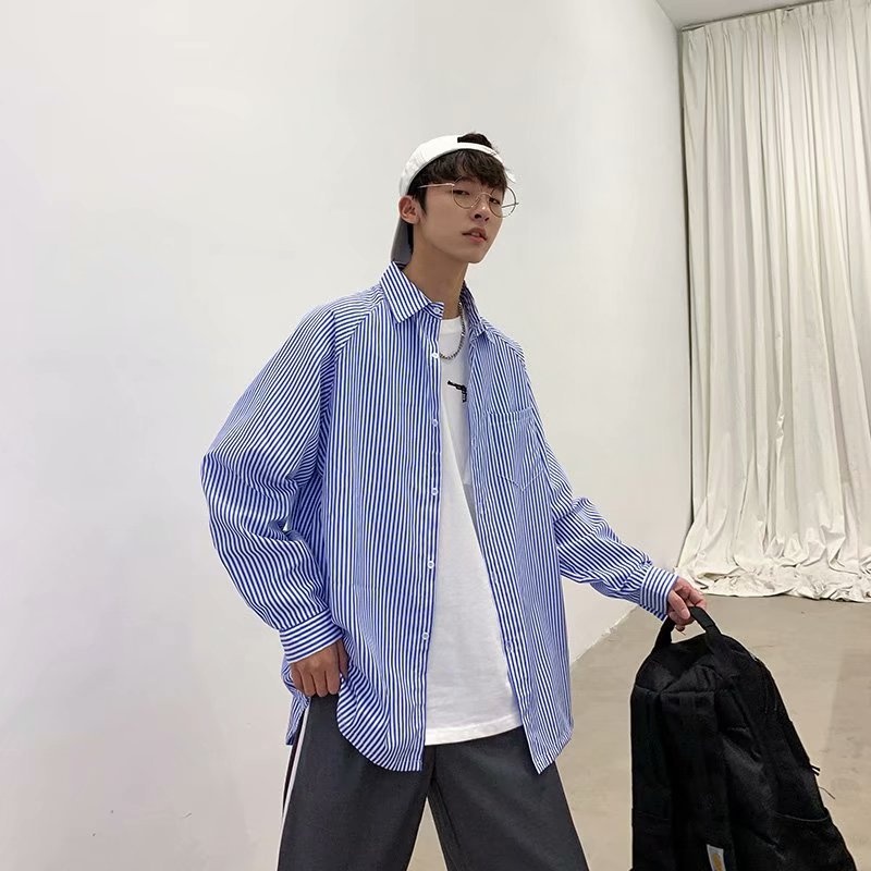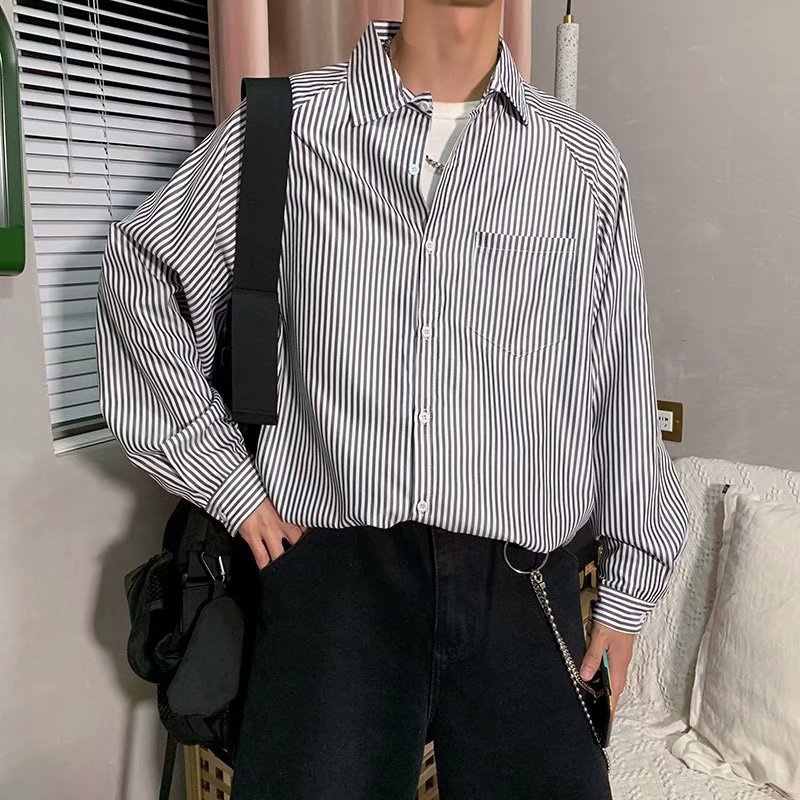 Long-sleeved Shirt For Men2019 Autumn Striped Shirt For Men Korean Version Slim Fity Loosey Brand Inch Shirt For Men