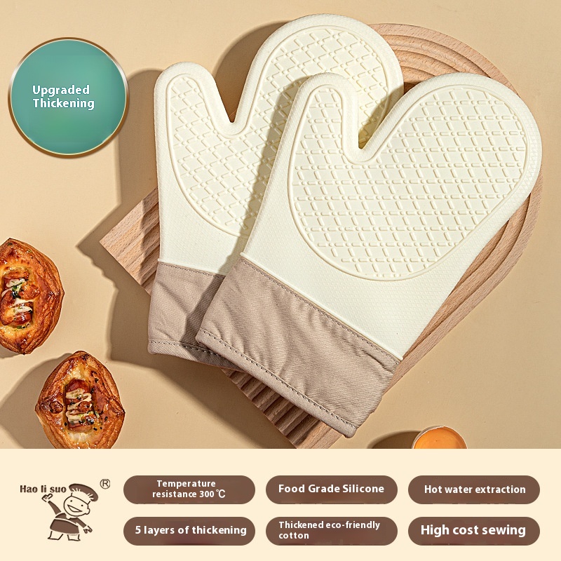 Silicone Gloves Heatulation Anti-scalding Gloves Oven Gloves Kitchen Thick High Temperature Resistant Microwave Baking Tools Cute