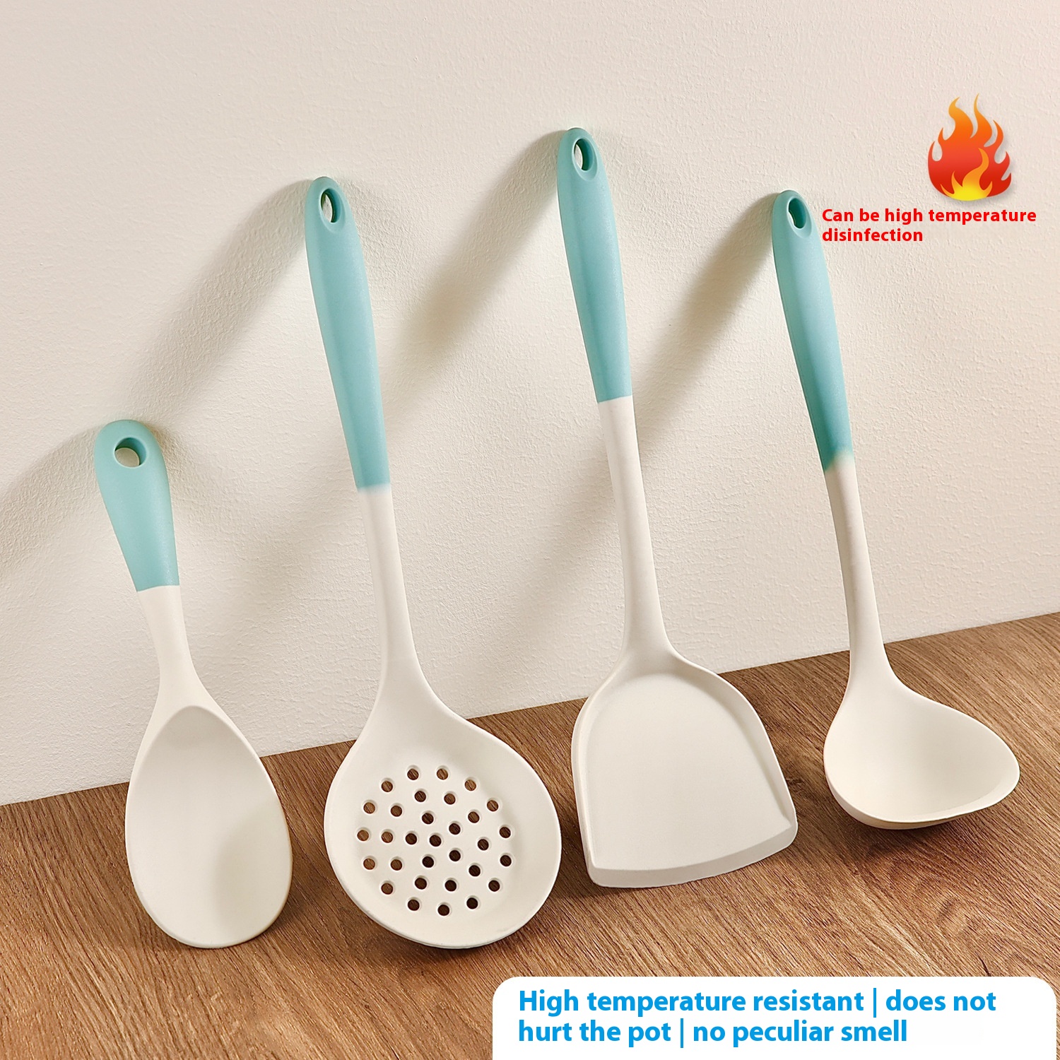 Two-color Silicone Kitchenware Silicone Spatula Colander Soup Spoon Plus Household Rice Spoon Multi-function Cooking Spoon Shovel4-piece Set
