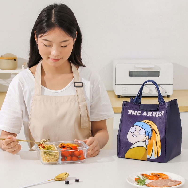 QVersion Of The Big Artist Lunch Bag Cute Cartoon Office Worker Lunch Handbag Lunch Box Bag Studentulation Cold Bag