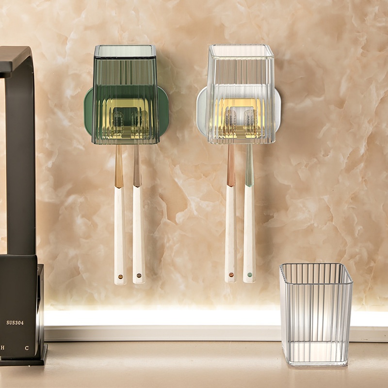 Light Luxury Style Toothbrush Cup Toothbrush Rack Wall-mounted Punch-free Bathroom Toilet Mouthwash Cup Set Toothbrush Holder