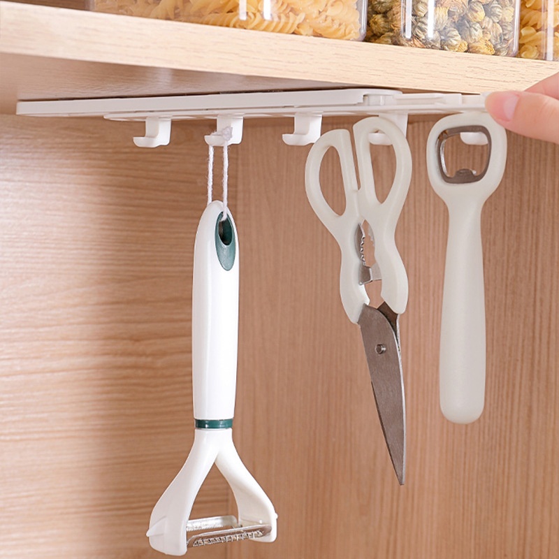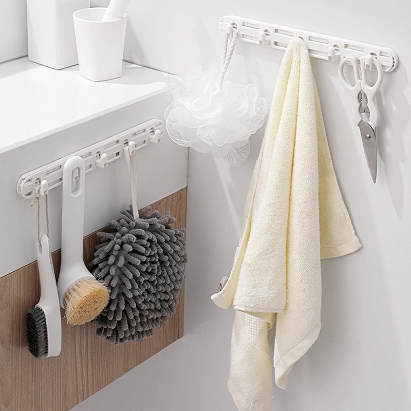 Slide Rail Push-pull Hook Kitchen Wardrobe Bathroom Cabinet Wall Hanging Adhesive Hidden Pull Movable Multi-row Hook