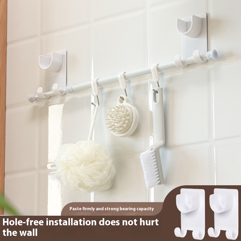 Large Double Hook Rod Support Telescopic Rod Auxiliary Support Punch-free Bathroom Kitchen Wardrobe Rod Fixer To Prevent Falling Off