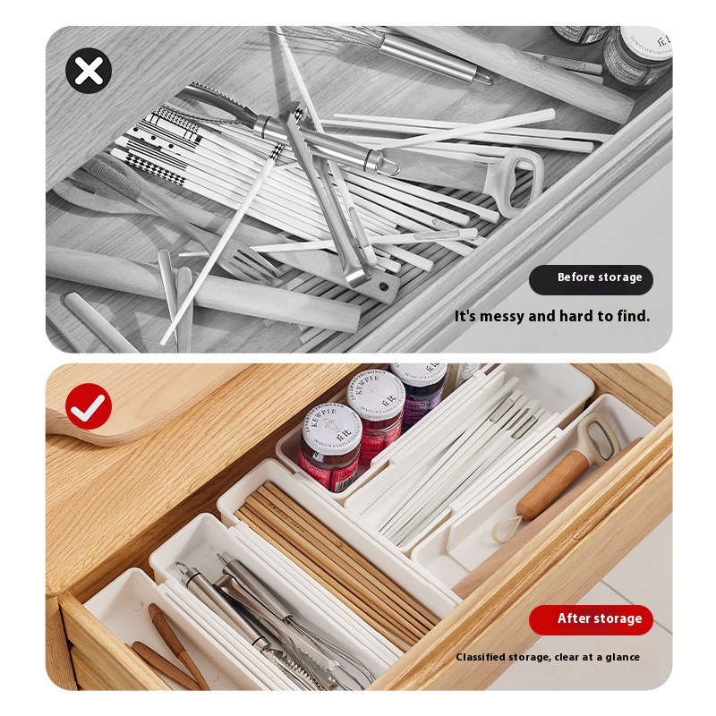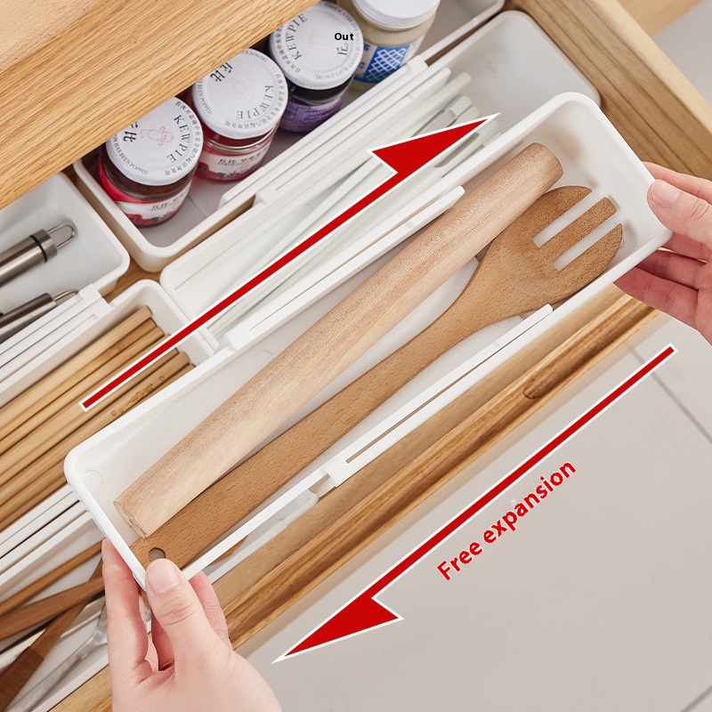 Retractable Drawer Storage Box Partition Box Cabinet Tableware Chopsticks Knife And Fork Built-in Home Storage Box Partition Artifact