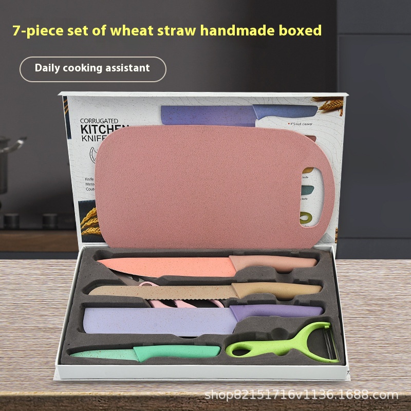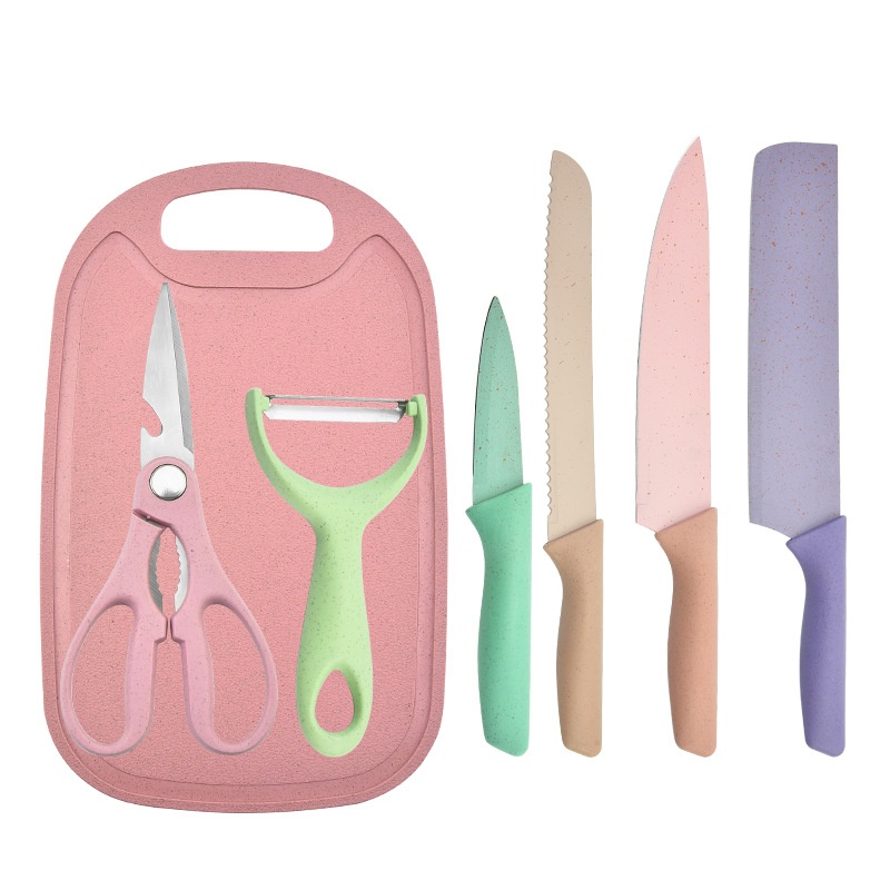 Color Knife Set Stainless Steel Straw6-piece Set Straw Knife Set7-piece Knife Set With Cutting Board Gift Knife Set