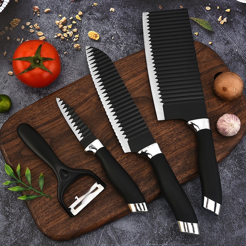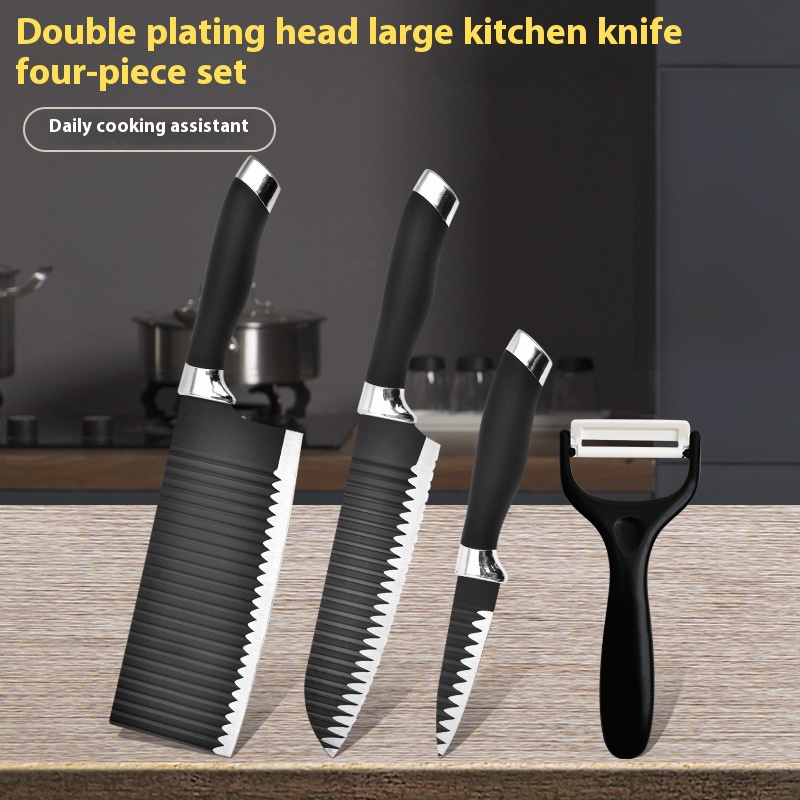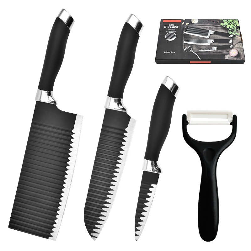 Yangjiang Kitchen Knife Stainless Steel Spray Paint Knife Black Double Electroplating Head Wave Pattern Four-piece Knife Set With Large Kitchen Knife