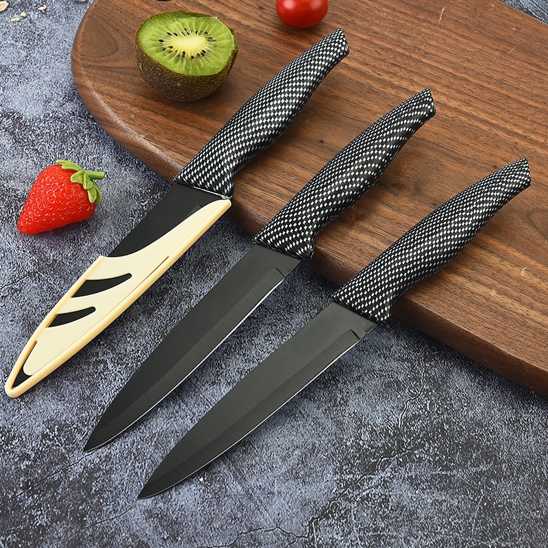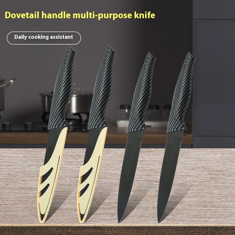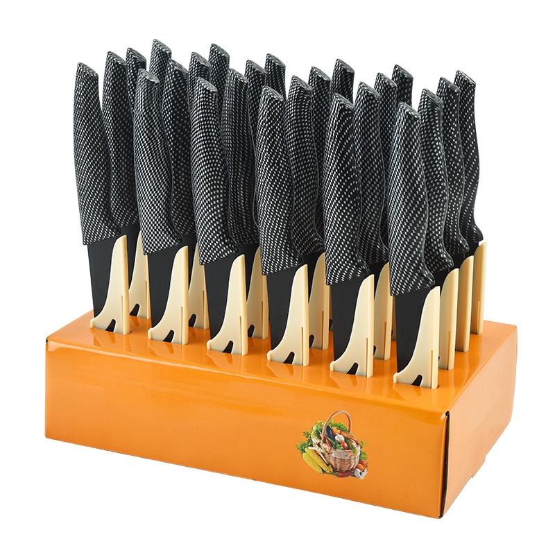 Yangjiang Kitchen Tools Spray Paint Knife Dovetail Grid Covered Handle Multi-purpose Knife With Knife Sheath Display Box Knife Set