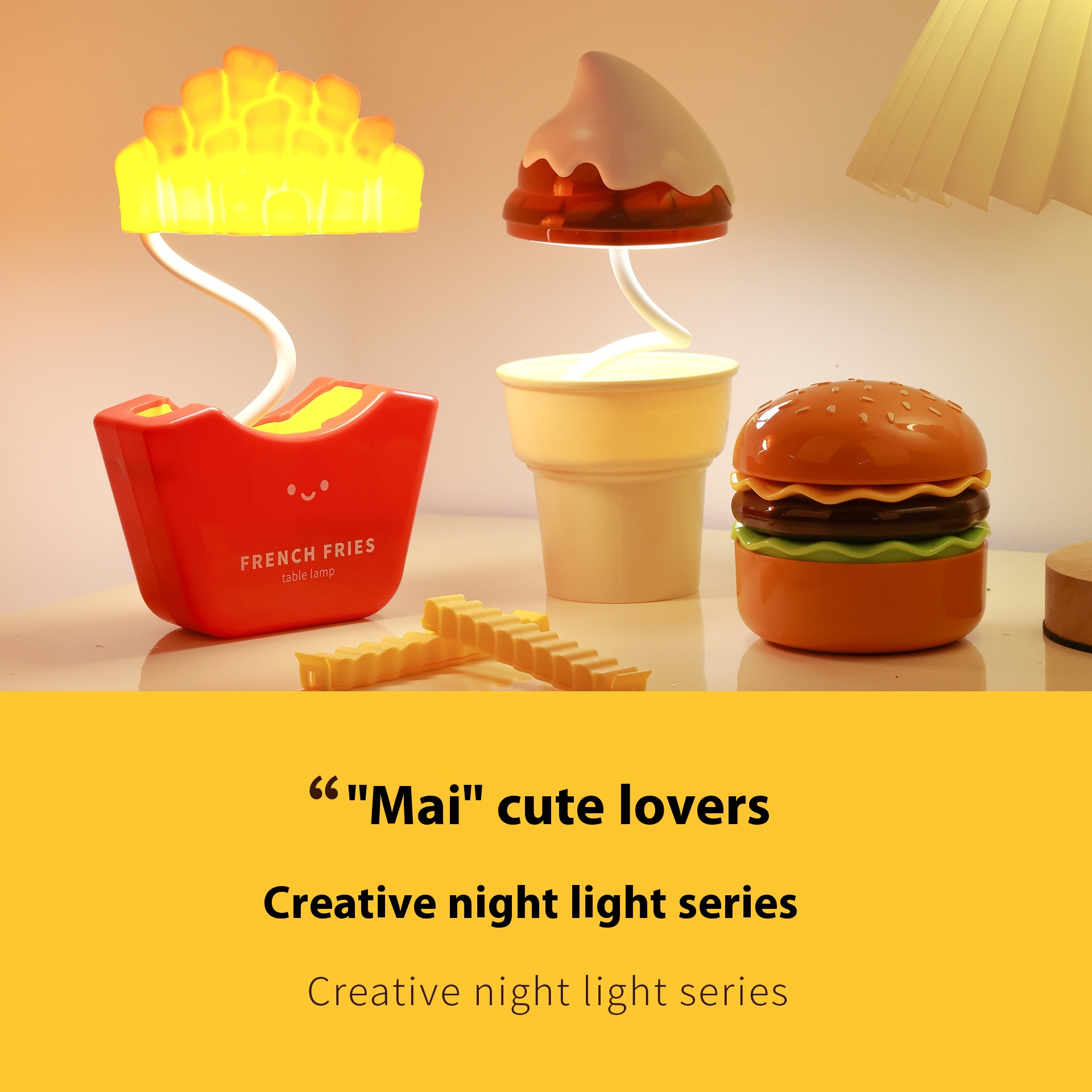 Creative Hamburger Night Light Bedroom Sleep Light Student Study Desk Small Table Lamp Atmosphere Light Ornaments