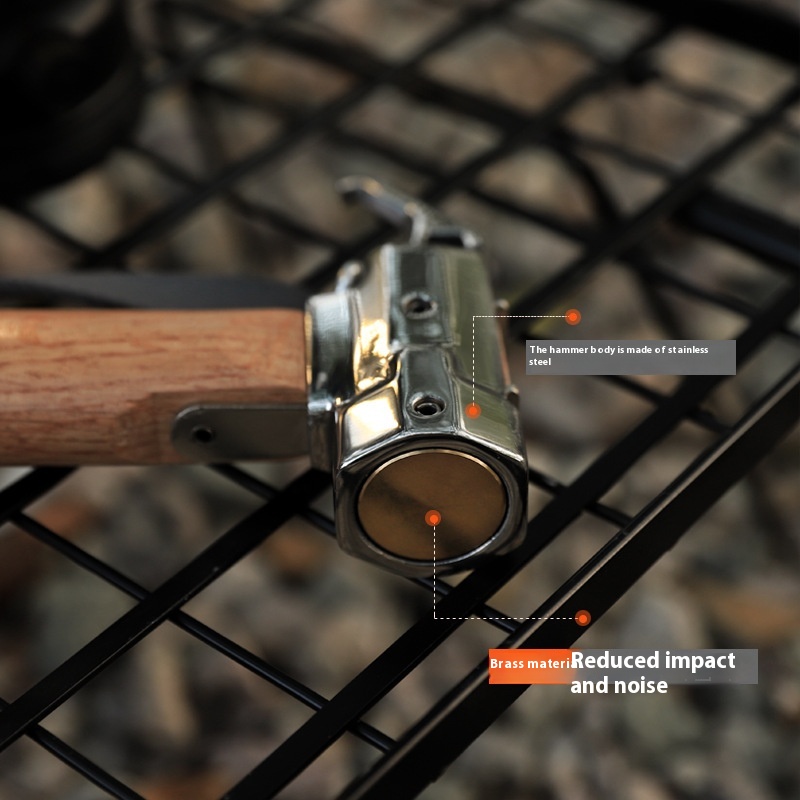 Outdoor Camping Stainless Steel Hammer Iron Hammer Tent Nail Puller Safety Hammer Hammer Safety Hammer Beech Wood Handle
