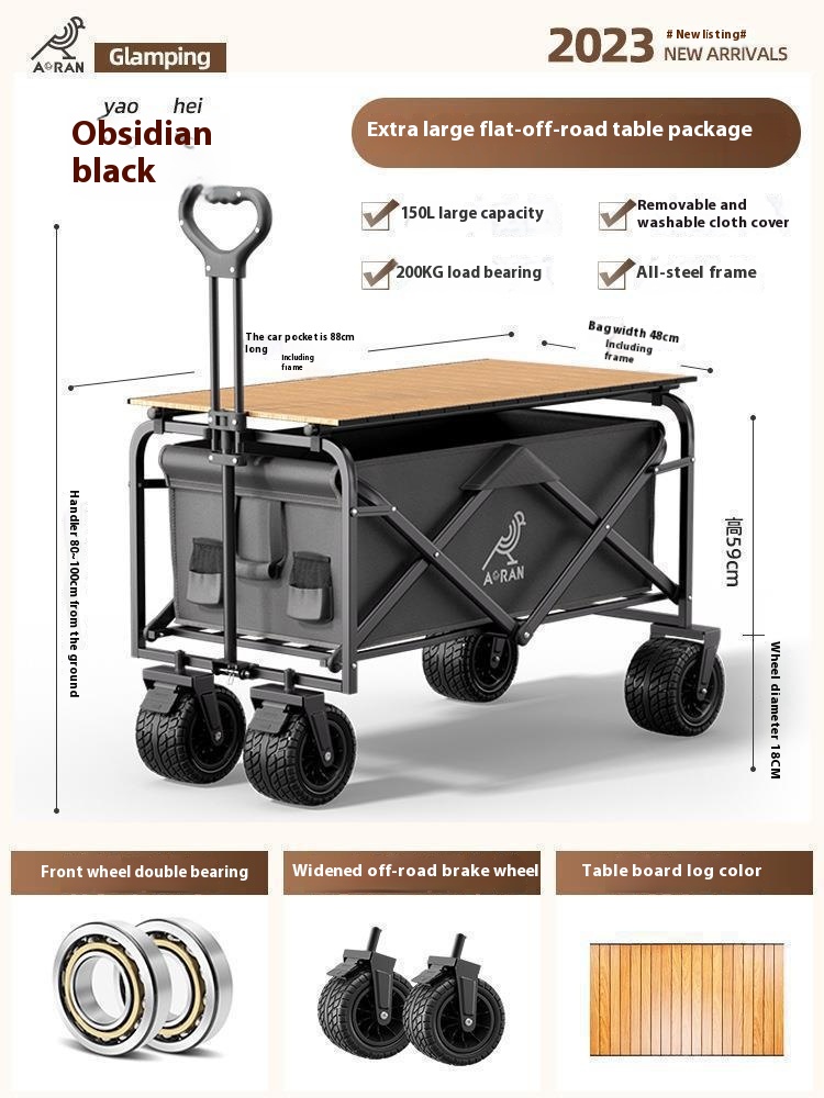 Camping Cart Spring Outing Foldable Outdoor Cart Picnic Car Camp Trailer Pull Rod Pull Table Camping