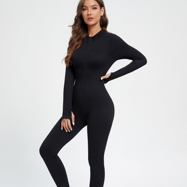 European And American Seamless Yoga Suit One-piece Sports Fitness Jumpsuit Tight Long-sleeved Yoga Suit Women's Waist Pants