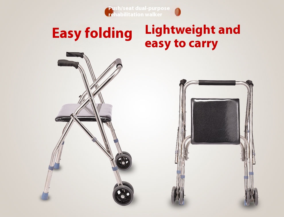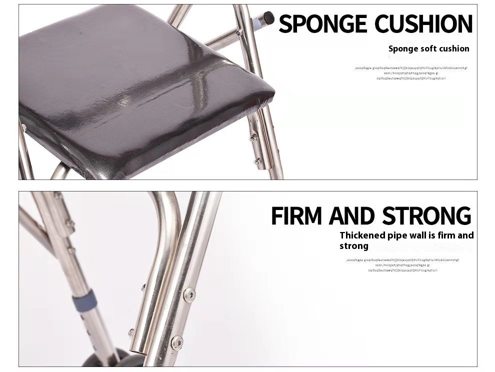 Thickened25-tube Stainless Steel Double-wheel Walker For The Elderly Wheel Seat Walker For The Disabled Folding Aid