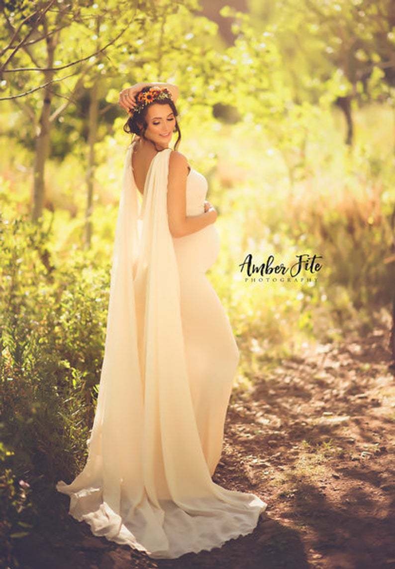 Maternity Photo Shoot With Floor-length Mopping Dress And Elegant Chiffon Long Skirt1910