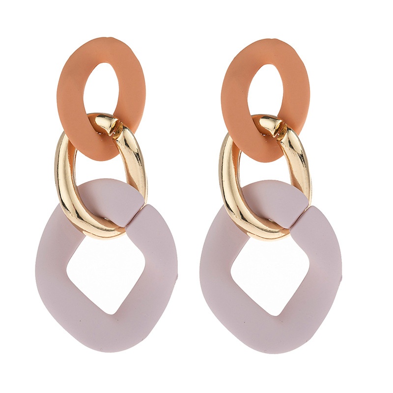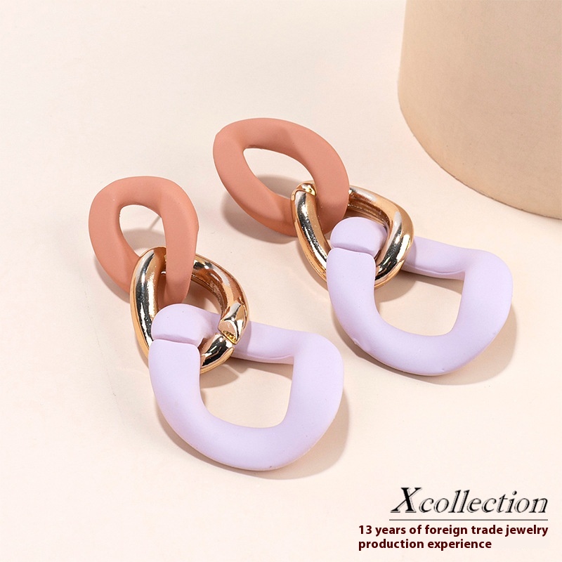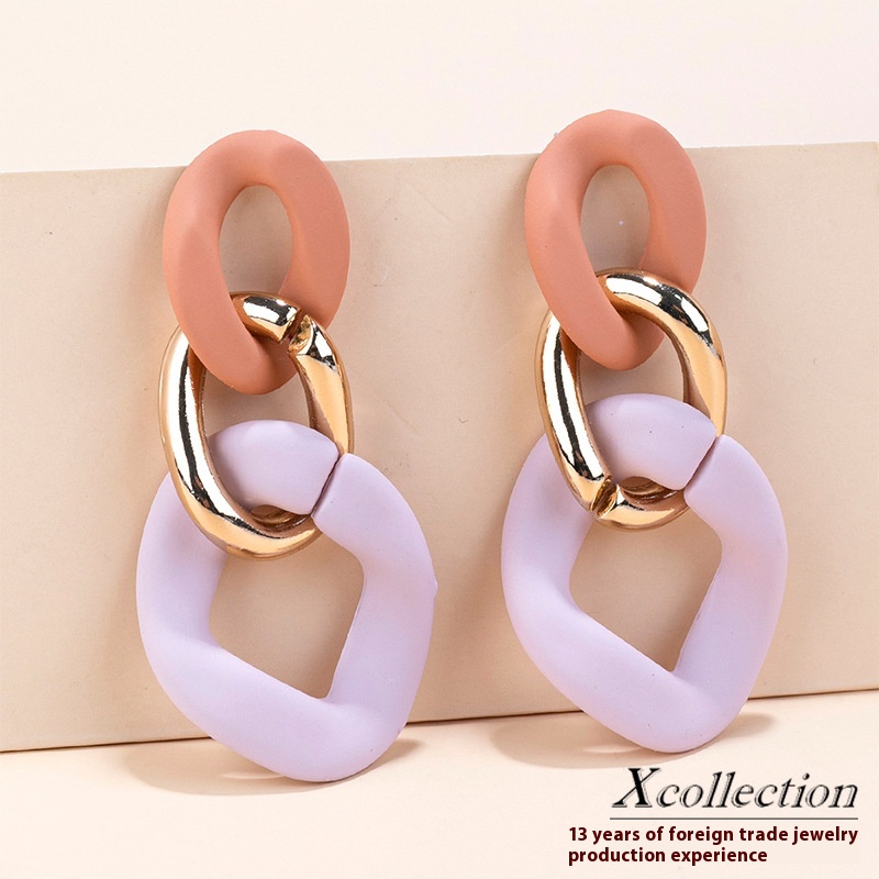 Retro Hong Kong Style Chain Resin Color Matching Earrings Female