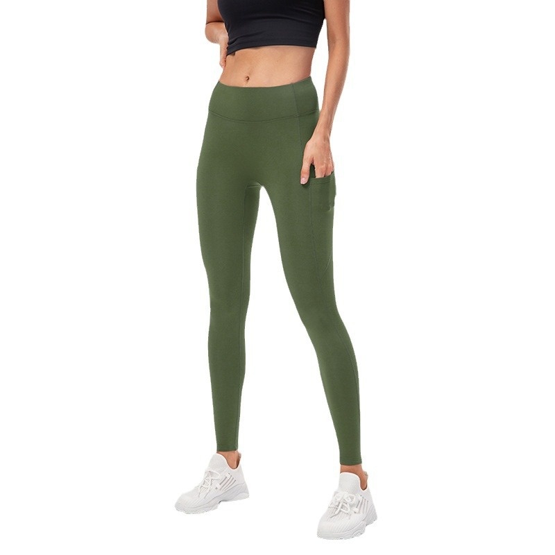 Women's Autumn And Winter Plus Fleece Yoga Fitness Trousers Warm High Waist Tight Pocket Running Training Sports Pants