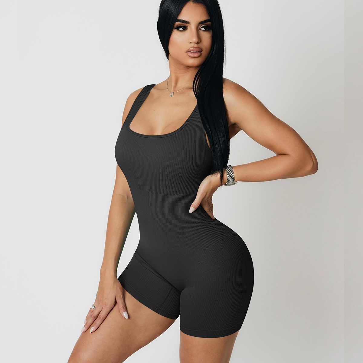 Seamless Threaded Square Neck Yoga Jumpsuit Sports Fitness Tight Sleeveless Yoga Suit Women's Waist Pants