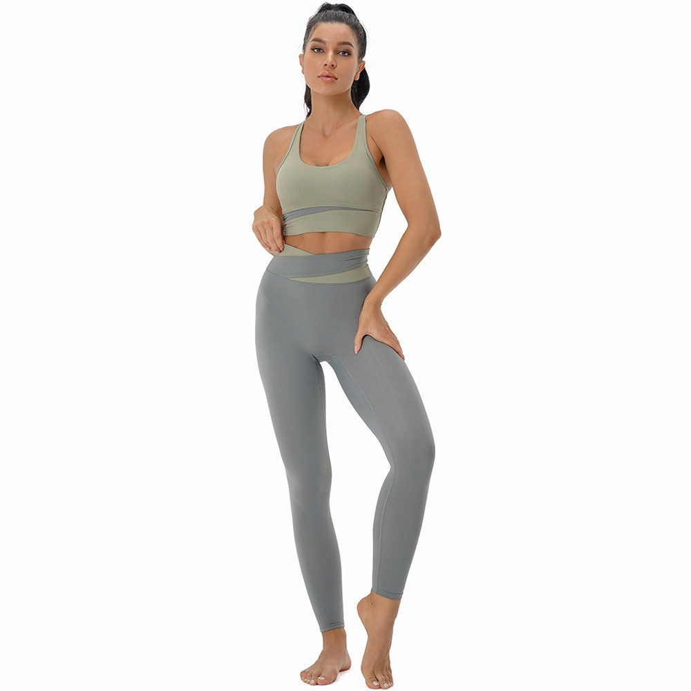 European And American Sports Fitness Suits For Women,Technology Shockproof Bra,Color Matching,High Waist,Hip Lifting,Tight Yoga Fitness Clothes