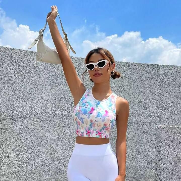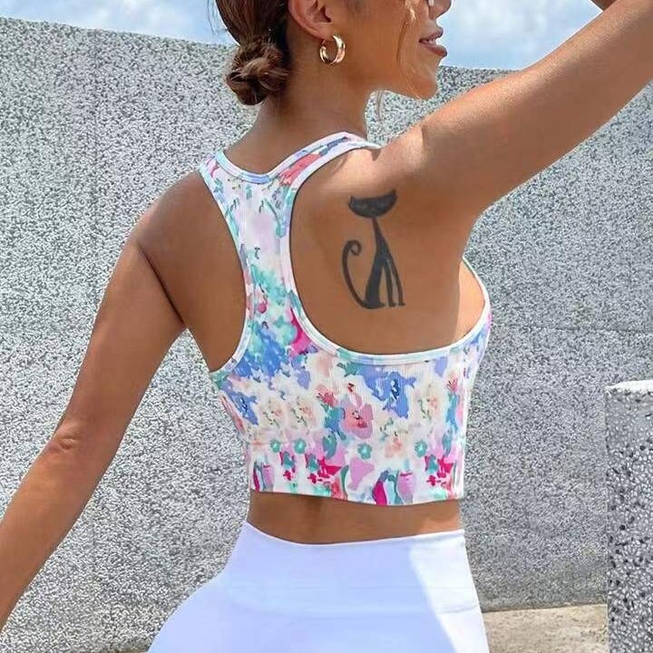 European And American Tie-dyed Yoga Bra Shockproof Gathered Sports Underwear I-back Fitness Vest Running Sports Women