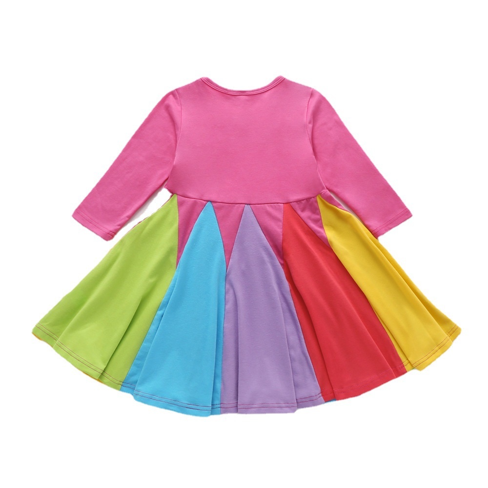 The Store Manager Recommends The Autumn And Winter Girls' Dress Long-sleeved Round Neck Color-blocked Rainbow Princess Skirt