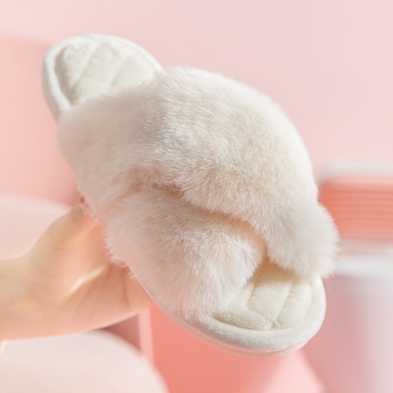 P V C Winter Slippers Plush Cross Floor Cotton Slippers Indoor Home Warm Plush Slippers