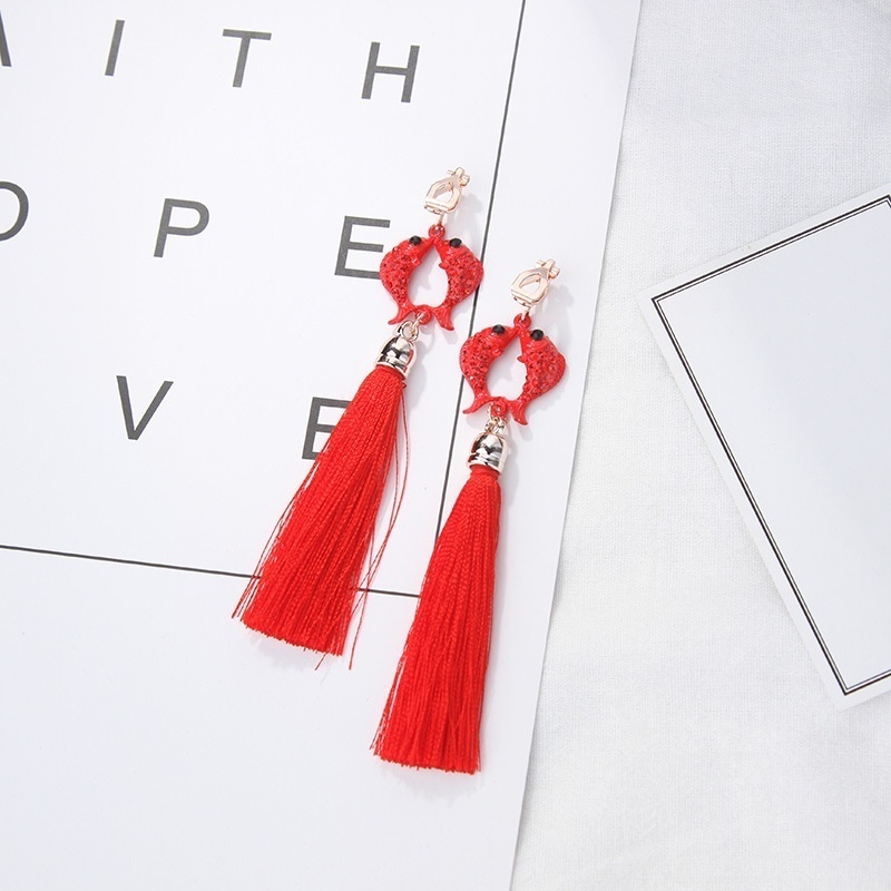 Chinese Style Temperament Retro Hanfu Ancient Style Ear Clip Chinese Knot Red Long Tassel Earrings Wedding Earrings For Women
