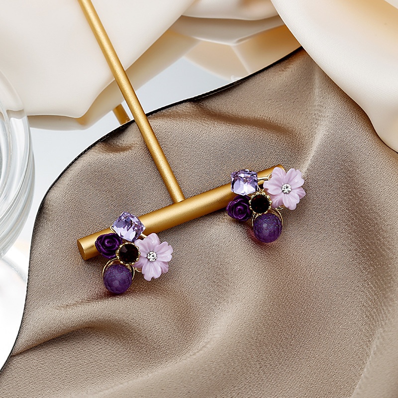 Silver Needle Korean Purple Diamond Cat's Eye Crystal Flower Earrings Fairy Sweet Retro Design Earrings