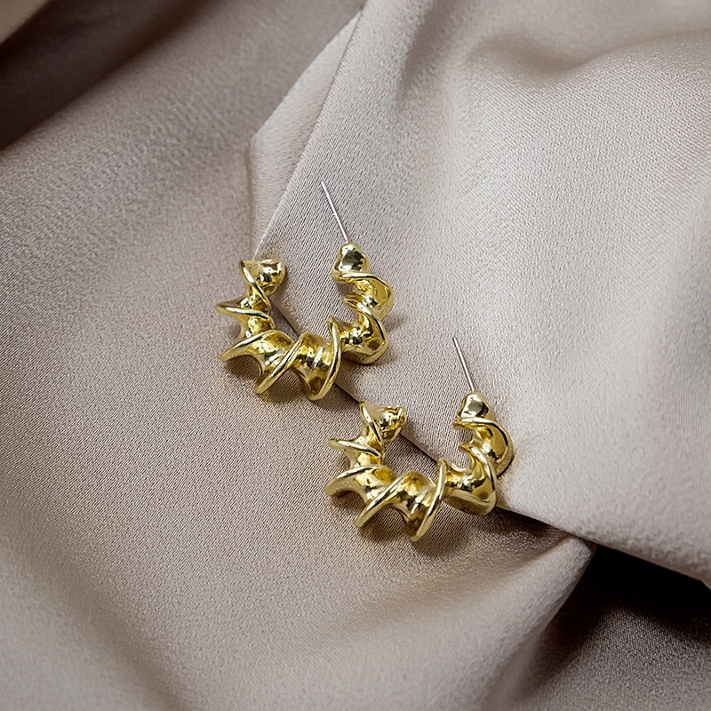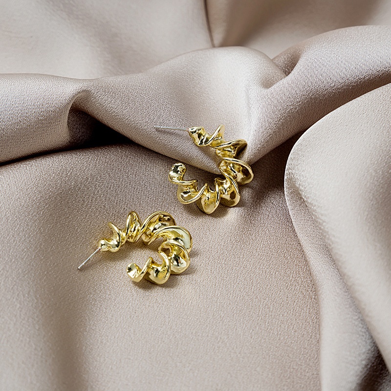 Silver Needle Hoop Metal Style Simple Temperament Twisted Spiral Twisted Earrings Exaggerated Style Fashion Earrings