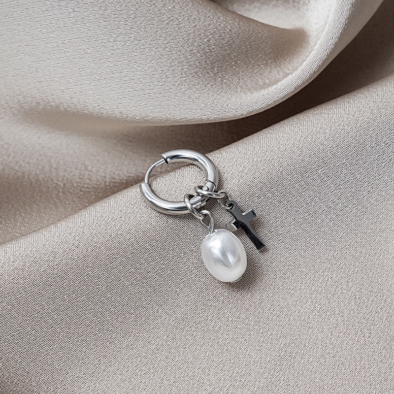 Fashion Simple Pearl Earrings With Metal Hoop Tassel Drop Earrings