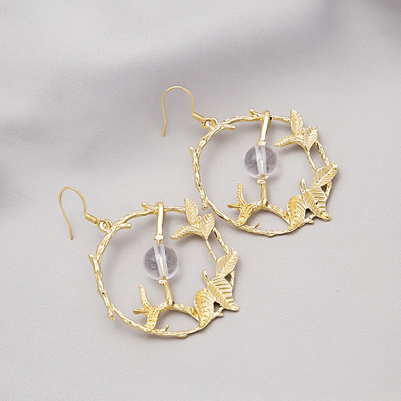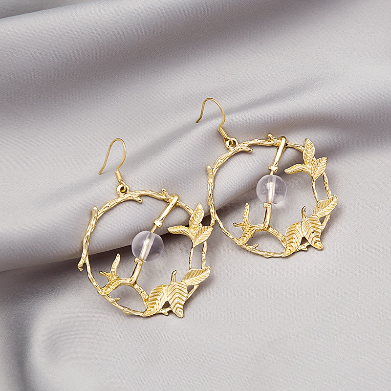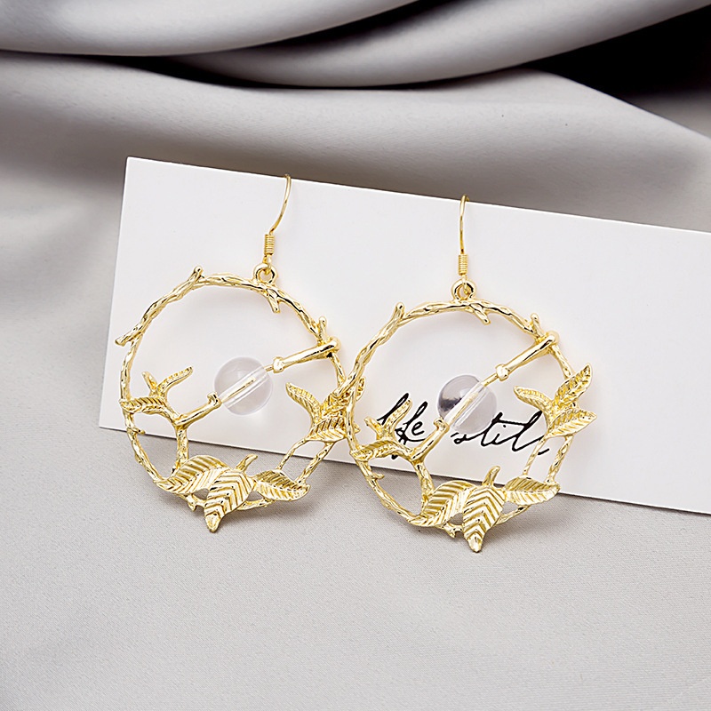 Korean Retro Small Fresh Hollow Leaf Circle Earrings Simple Branch Ball Earrings Earrings