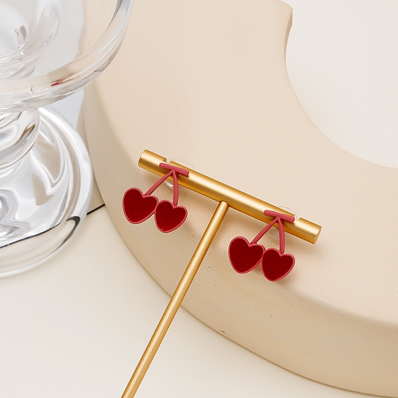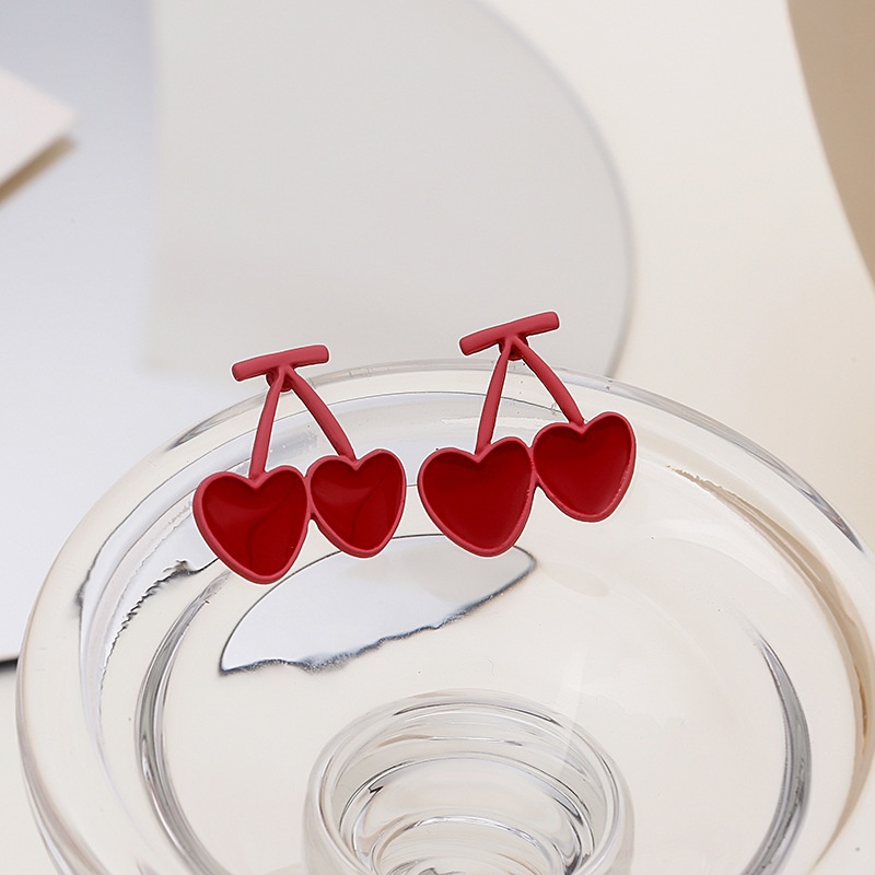 Silver Needle Oil Drop Double Heart Earringsy Sweet Cute Small Fresh Cherry Earrings Summer Earrings For Women
