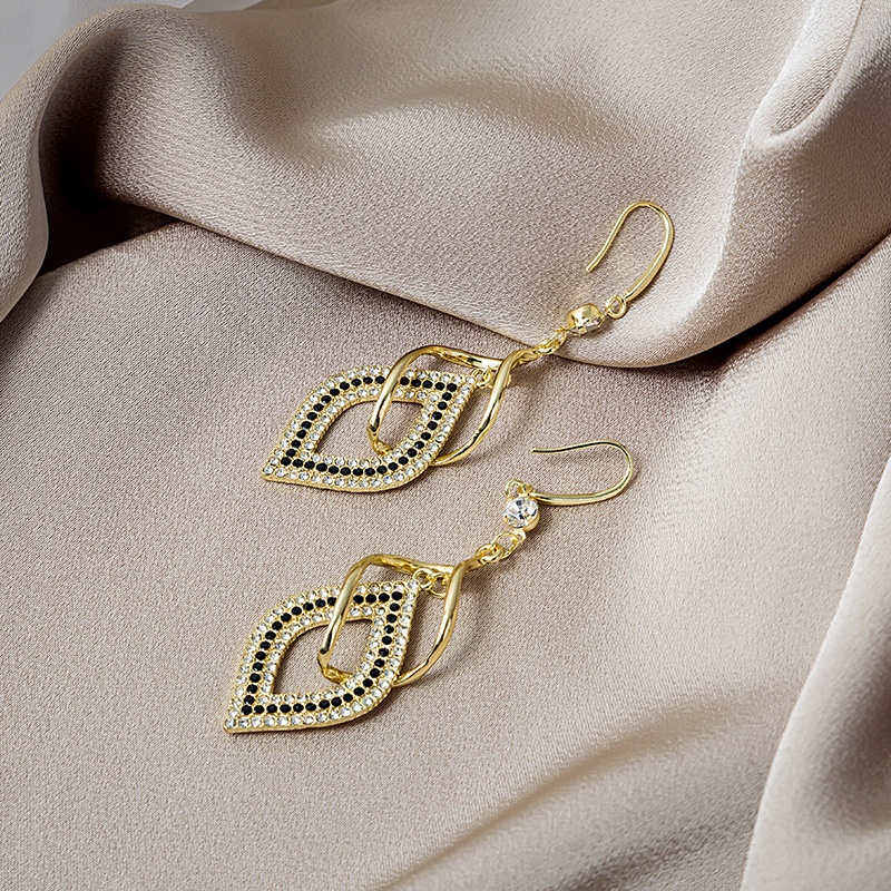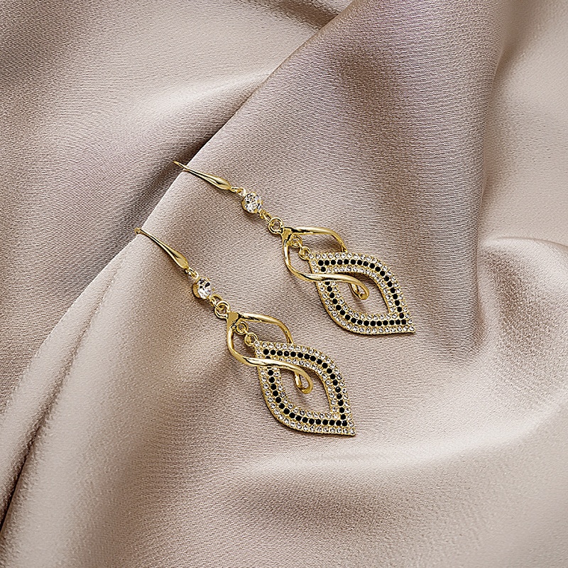 Silver Needle Long Tassel Autumn And Winter Full Diamond Diamond Ring Interlocking Earrings Elegant Temperament Fashion Earrings